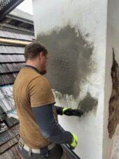 Opravy komínů provádíme jako součást našich střešních realizací. Řešíme dva nejčastější problémy — poškozené spárování a popraskané omítky.
